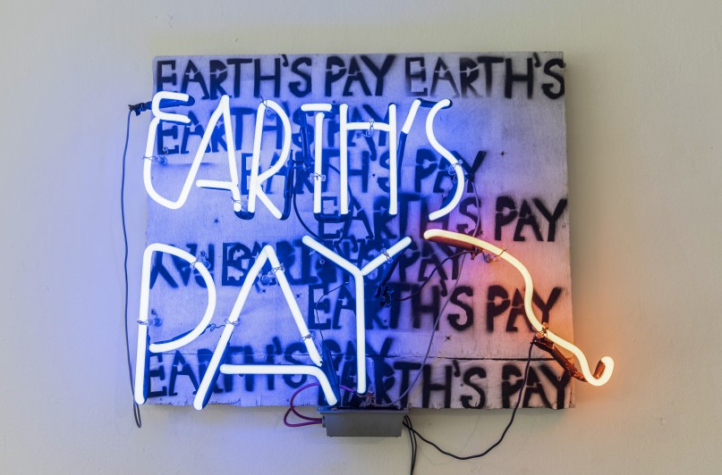 Installation with canvas, paper and neon